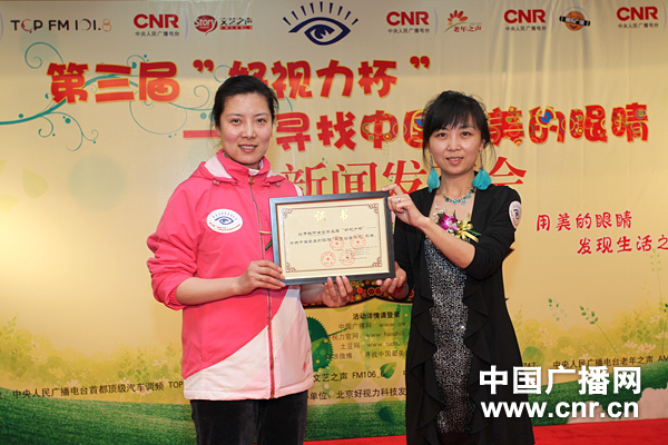 3月30日,第三屆“好視力杯”——尋找中國最美的眼睛活動在北京啟動。中央人民廣播電臺副臺長王曉暉、中國廣播網(wǎng)總裁趙連軍、央廣都市文化傳媒有限公司總經(jīng)理孟昕以及奧運冠軍杜麗等出席活動儀式。 中廣網(wǎng)記者涂傲 攝