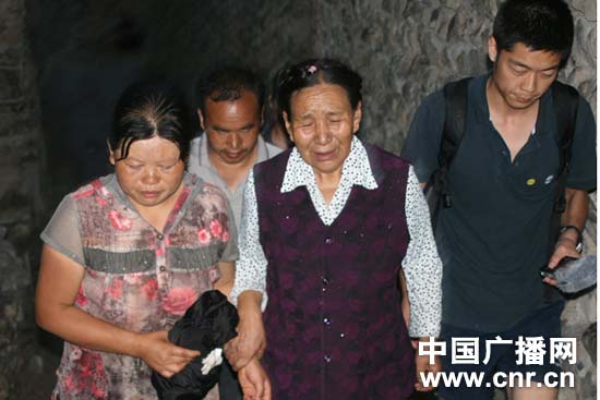8月14日,夫婦倆在天色將黑時離開挖掘現場,去看一眼早前安置在舟曲縣郊的一雙兒女。從舟曲縣城向北15公里,黃波激蕩白龍江的沿岸,山勢平緩的半山腰,藏式風格的“好地坪”村口路邊,74歲藏族阿媽拉毛吉遠遠望著走過來的劉寶全、李金青夫婦。阿媽拉毛吉先是握住妻子李金青的手,然后兩個人擁抱著伏在對方肩上放聲痛哭。丈夫劉寶全在旁邊帶著哭聲寬慰了兩句,“阿媽,也不是一家這樣的…”路邊村里人也紛紛過來安慰。