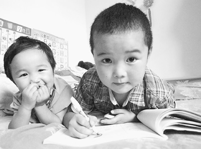 一年后,記者幾經(jīng)打聽來到姚國亮的家中,他正趴在床上教已經(jīng)兩歲多的妹妹涂鴉。小國亮的媽媽說,“我們兩口子有時(shí)候出門去忙生意,一離開就是大半天,都是他在家照顧妹妹。”