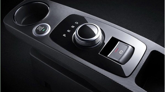 中控臺中央配備有一款懸浮式中控液晶顯示屏,造型非常時尚。同時該屏幕還集成了空調、藍牙電話、娛樂系統、導航等功能,從而簡化了物理按鍵。此外,中控臺采用銀色裝飾條進行點綴,并鑲嵌有EV標識。