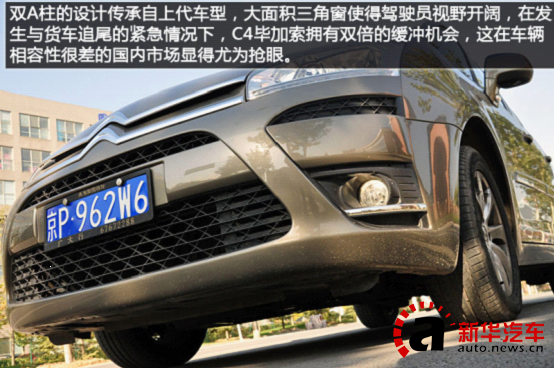 渾然一體卻又不失設計感與層次感是C4畢加索前臉部分給人的最大印象,不過這也是法系車設計方面的強項。一直延伸至車頂?shù)木扌惋L擋玻璃是C4畢加索在MPV領域的又一創(chuàng)新,而紫色的隔熱層則表達出歐系車的用心與厚道。雙A柱的設計傳承自上代車型,大面積三角窗使得駕駛員視野開闊,在發(fā)生與貨車追尾的緊急情況下,C4畢加索擁有雙倍的緩沖機會,這在車輛相容性很差的國內市場顯得尤為搶眼。