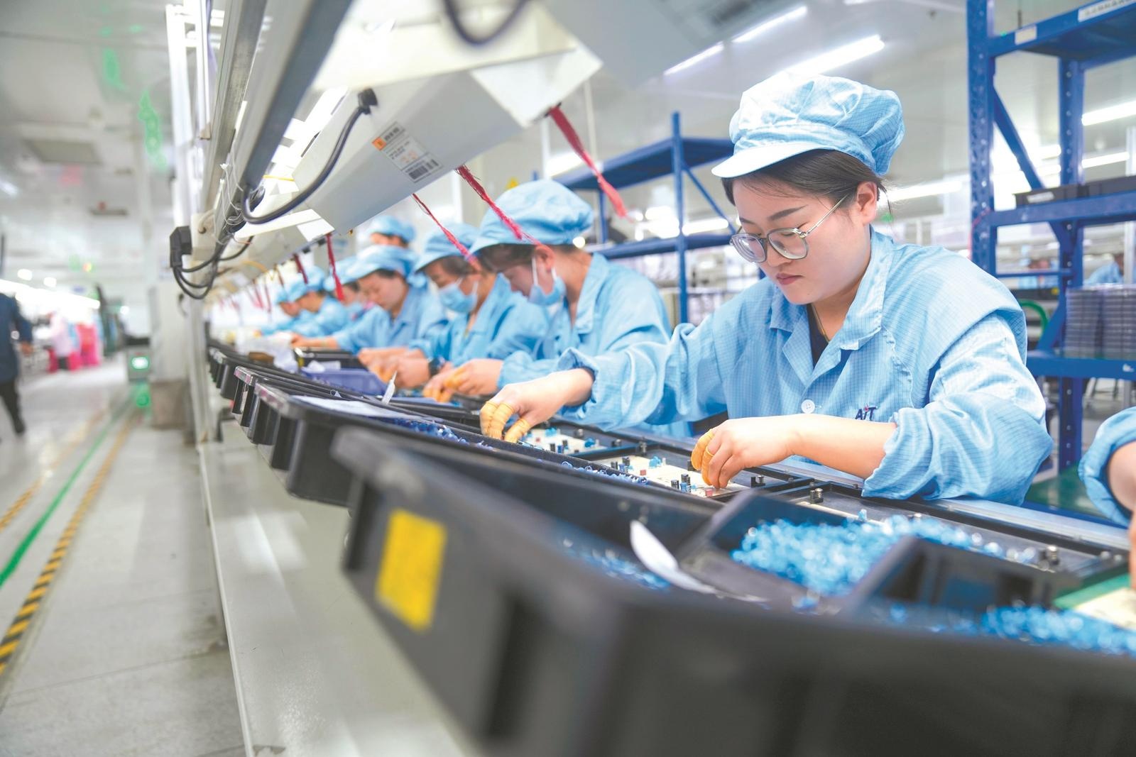 11月14日,“皖美十四五再啟新征程”2025網聚美好安徽網絡主題活動走進宿州高新區。在安徽英特麗電子科技有限公司的生產車間,工人在趕制新能源集成電路板。自2021年企業落戶以來,解決了周邊一批居民就業問題。
