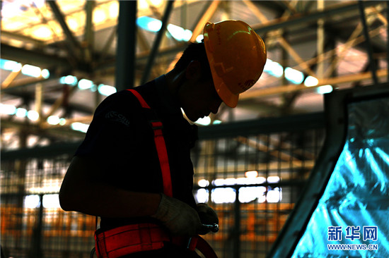 在高達50℃的動車檢修廠內,工作人員正在為動車“體檢”。新華網 石璐 攝