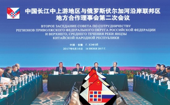 6月16日上午,國務(wù)委員楊潔篪在合肥同俄羅斯總統(tǒng)全權(quán)代表巴比奇共同主持召開中國長江中上游地區(qū)和俄羅斯伏爾加河沿岸聯(lián)邦區(qū)地方合作理事會(huì)第二次會(huì)議。下午,雙方共同出席兩地區(qū)第四屆青年論壇閉幕式。省委書記李錦斌出席閉幕式,省長李國英出席會(huì)議和閉幕式。省領(lǐng)導(dǎo)唐承沛、張曙光,省政府秘書長侯淅珉?yún)⒓訒?huì)議或閉幕式。