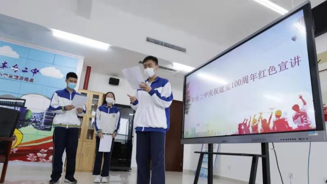 。▓D為豐臺二中學(xué)生進行建黨百年紅色宣講演練 豐臺區(qū)宣傳部供圖 央廣網(wǎng)發(fā))