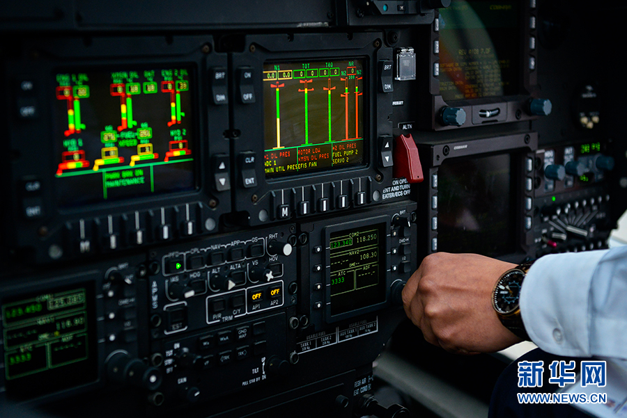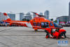 11月12日,航空應急醫(yī)療救援在重慶市璧山區(qū)舉行,圖為執(zhí)飛機長進行飛行前的確認檢查。新華網(wǎng) 李相博 攝 -