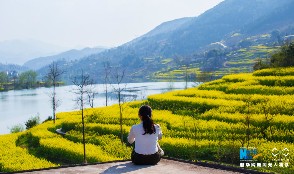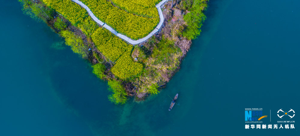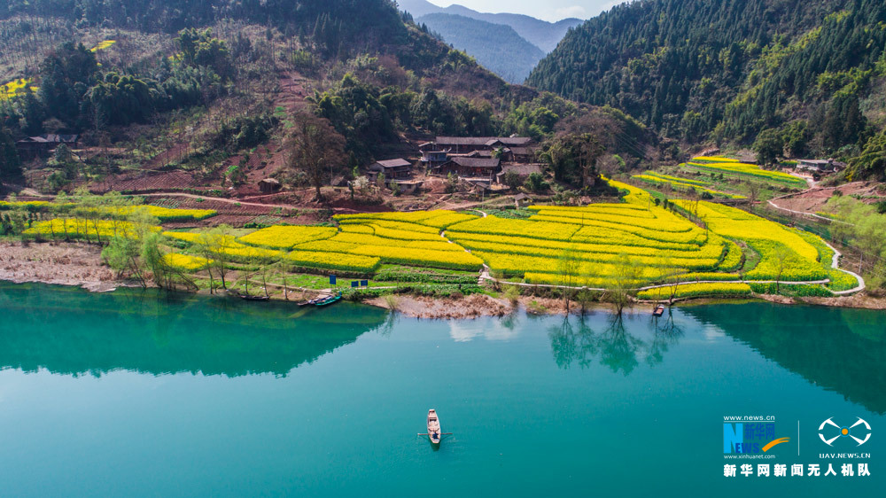 陽春三月,春水初生,花海漸盛。在重慶市黔江區(qū)阿蓬江畔,油菜花海沿著江岸蔓延開來,正是半江春色半江水。圖為無人機航拍重慶阿蓬江春色,詩情畫意濃。新華網(wǎng)發(fā)(王江龍 攝) -