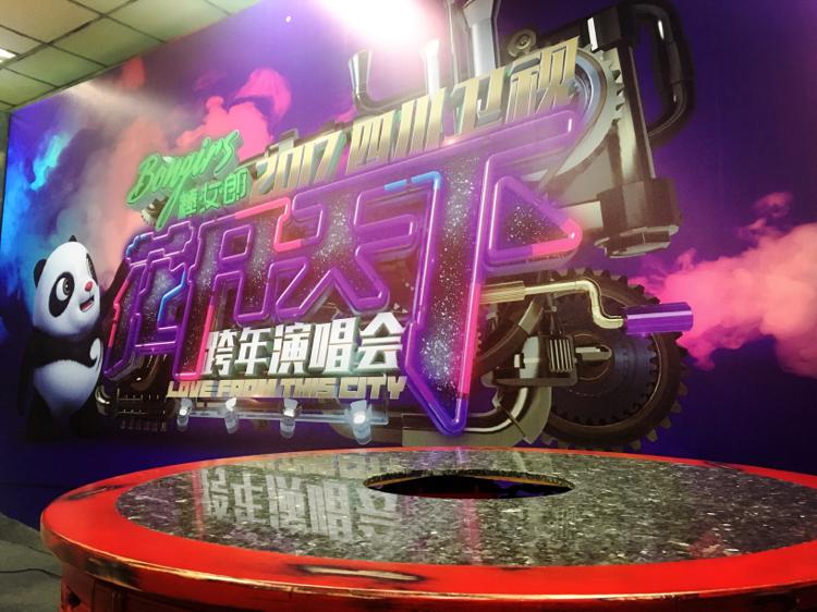 在主會場旁邊,網絡直播的第二現場已經搭建完畢,正在最后的調試當中。除了近距離為粉絲們介紹現場盛況外,現場還會架起真的火鍋,邊吃邊跨年。都知道四川人愛吃,但愛吃成這樣也是讓人大開眼界。