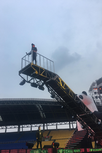 熊貓既充當舞臺又兼顧DJ,如此忙碌的它們還不忘做最忠實的觀眾。熊貓的眼睛由LED組成,除了作為舞臺背景燈光之外,還可以靈活的轉動,并追隨演員的腳步,活靈活現,完全不輸給真正的熊貓。