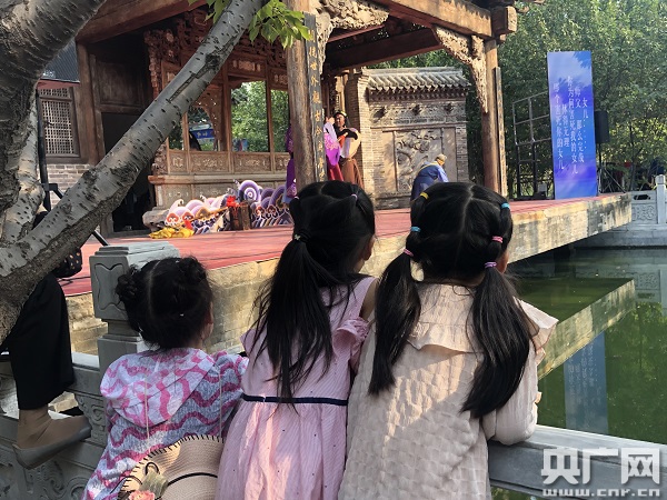 圖為游客和戲曲演員互動。(央廣網(wǎng)記者 方永磊攝)