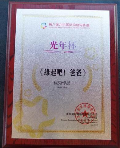 2019年1月20日,第八屆北京國際網絡電影節在北京圓滿落下帷幕。景甜、董璇、李小璐、王思懿、林永健、潘斌龍、蘇麗、辰亦儒、張山等演員、知名電影人、行業專家以及全國媒體匯聚一堂,見證了這一互聯網影視行業年度盛事。盛典上,安徽省禾谷影業有限公司、浙江漢武影業有限公司出品的《雄起吧!爸爸》憑借充滿生活氣息的現實題材、幽默搞笑的故事以及院線電影的質感,從一千多部網絡電影中脫穎而出,榮獲優秀作品獎!
