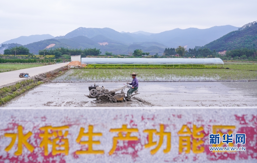 福建各地迎來(lái)春耕春播季。在漳州市漳浦縣官潯鎮(zhèn)康莊村,面積達(dá)1900畝的福建省級(jí)糧食產(chǎn)能區(qū)示范片區(qū)3月26日起開(kāi)始插秧。水稻工廠化育秧基地里,秧苗郁郁蔥蔥,長(zhǎng)勢(shì)喜人。在廣袤無(wú)垠的水田上,現(xiàn)代農(nóng)機(jī)往來(lái)打田、播種,農(nóng)戶(hù)在此間干得熱火朝天。今年春季,這里預(yù)計(jì)種植水稻1600多畝,余田也將陸續(xù)種上毛豆和西瓜。