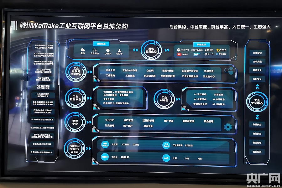 騰訊WeMake工業(yè)互聯(lián)網(wǎng)平臺(tái)架構(gòu)。(央廣網(wǎng)記者 夏燕 攝)
