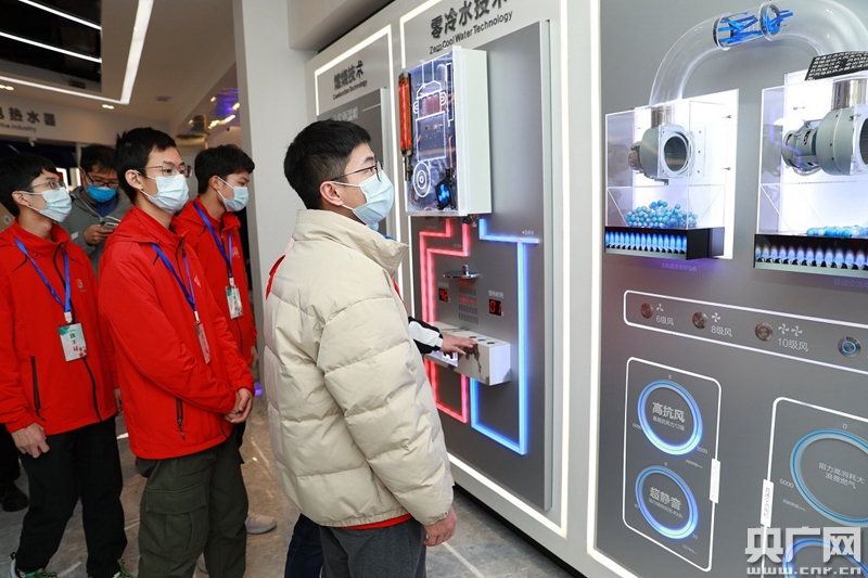 國賽選手參觀萬和電氣的智能化展廳。(央廣網發)