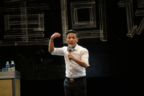 圖為宋小寶從他成長(zhǎng)中的艱辛講到舞臺(tái)上的歡樂(lè),回憶了很多自己的童年趣事。