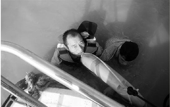 “我們把快艇的不銹鋼舷梯放下來,兩名協輔警在快艇上抓住落水男子的手,我在水中把他往上托,終于把他拉到了快艇上。”金衛良說,當快艇載著落水男子來到岸邊的碼頭時,已經3點10分左右了。