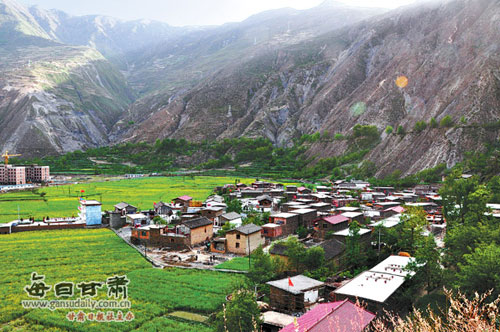 中廣網(wǎng)蘭州4月30日消息 綠樹、良田、新居,舟曲縣峰迭鄉(xiāng)壩子村美麗安詳。經(jīng)過災后重建,壩子村面貌煥然一新。記者 洪文泉 攝