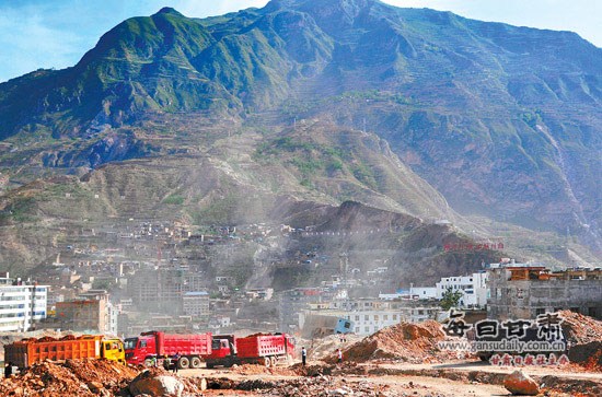 中廣網蘭州6月17日消息 甘肅省水利水電工程局工程隊在舟曲縣三眼峪排洪渠現場施工。目前,舟曲縣城泥石流綜合治理工程進展順利。記者 洪文泉 攝