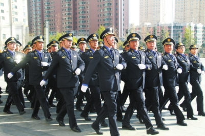 當日換裝后,紅古區城管執法人員精神抖擻,整齊劃一地進行了會操演練活動。紅古區執法局局長包永江介紹說,新制服是城市管理行政執法的專用裝備,也是隊伍正規化建設的需要,紅古區執法局將以此次換裝儀式為契機,提升和改善城管執法人員的素質和形象,轉變工作思路,創新工作方法,促使城市管理工作貼近發展需要,符合市民群眾需求,內強素質、外樹形象。