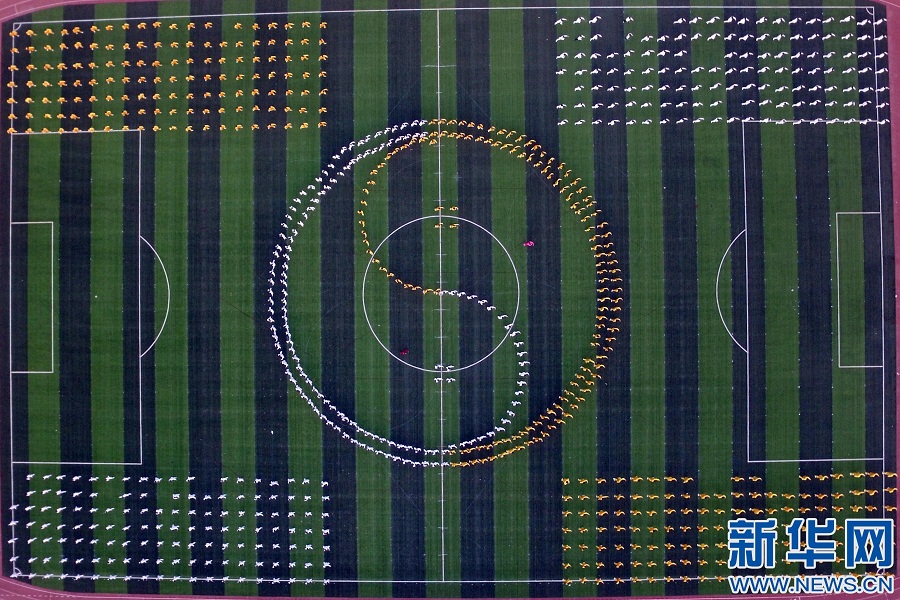 4月12日,河北省廣宗縣第一中學(xué)學(xué)生在練習(xí)太極拳。新華社發(fā) 陳雷攝 -