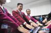 •      2月1日,寧儒(左二)、梁鶴(左三)在登機前進行儀容儀表檢查。新華社發(楚洪雨 攝)