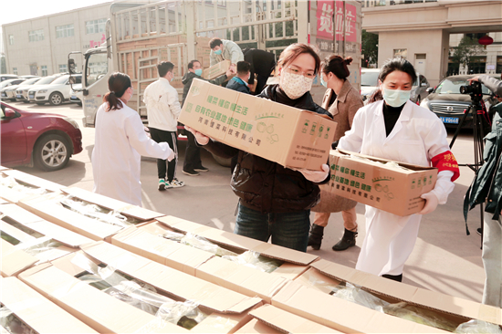 3月12日,中華網河南頻道聯合碧桂園河南區域舉辦的益路華彩·同心社區戰“疫”公益活動走進鄭州市高新區梧桐街道辦事處、秦莊村、瓦屋李社區,慰問長期奮戰在一線的社區工作者,并為他們帶去蔬菜套裝、河南燴面、干掛面、精品蘋果等800件愛心物資。