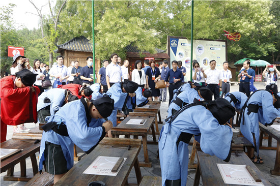 中國翰園碑林為本次研學觀摩做了充足的準備,向觀摩團展示了曲水流觴、開筆禮、拓片體驗、華文菁英會四項精品研學課程,觀摩團一行通過實地參觀了解,對中國翰園碑林的研學課程作出了高度評價。