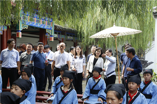 為貫徹《教育部等十一部門關于推進中小學生研學旅行的意見》和《河南省教育廳等10部門關于推進中小學生研學旅行的實施方案》,深入落實全省文化旅游大會精神,加快推進中小學生黃河文化研學旅行工作,河南省文化和旅游廳、省教育廳研究決定,于7月24日在開封市召開 “河南省黃河文化研學旅行會議”。中國翰園碑林為此次大會的研學觀摩基地之一。河南省教育廳副廳長毛杰、河南省文化和旅游廳副廳長朱建偉和與會領導及嘉賓蒞臨中國翰園碑林參加本次觀摩活動。