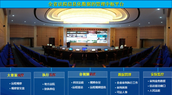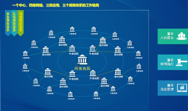 先后建成的信息集控中心、核心機房、執(zhí)行指揮中心、視頻綜合管理監(jiān)控系統(tǒng),視頻會議系統(tǒng)、高清數(shù)字法庭系統(tǒng)、辦案區(qū)安防系統(tǒng)、涉訴信訪接待系統(tǒng)、12368平臺、OA辦公系統(tǒng)、移動辦公辦案系統(tǒng)、數(shù)據(jù)分析平臺等,使案件從立案到結(jié)案流程數(shù)據(jù)全程可視;法律文書從制作、糾錯、屏蔽、上網(wǎng)一鍵完成;庭審活動實現(xiàn)了全程的錄音錄像。實現(xiàn)了“審判管理網(wǎng)絡(luò)化,電子審核簽發(fā)化,庭審活動科技化,機關(guān)辦公無紙化”,通過信息化建設(shè)增進了資源共享、提高審判效率、節(jié)約審判資源、方便群眾訴訟的目的,形成了網(wǎng)絡(luò)全互聯(lián),業(yè)務(wù)廣覆蓋、數(shù)據(jù)大集中、資源共享用的河南法院信息化工作格局。 ?