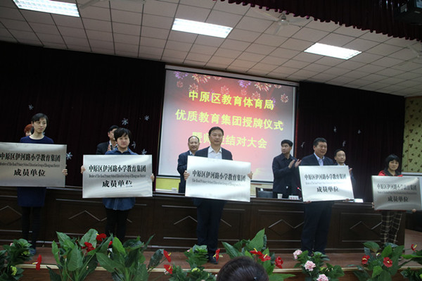 會上,優質教育集團核心校鄭州市第七十三中學、中原區伊河路小學、中原區互助路小學、中原區建設路第二小學、中原區伏牛路小學、中原區淮河路小學等分別被授予教育集牌匾牌;而依托這些核心校,伊河路小學工人路校區、錦繡城校區、工農路小學、互助路小學北校區、錦藝校區、陽光花苑校區、瀾景校區、向陽小學、航西小學、建設路第三小學、建設路第六小學、七十中學、中原回中、中原一中、華山路小學、鄭上路小學、帝湖小學等則分別被授予教育集團成員單位牌匾。