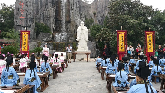 近兩年,翰園碑林不斷豐富研學課程,并著力培養課程研發團隊,同時積極與外界合作,拓展市場。現已開展的研學課程主要有開筆禮、拓片體驗、華文菁英會、書法大講堂、金磚練字、書海拾貝、趣拼六藝、獨步宋詞、活字印刷、曲水流觴、碑刻體驗、國學禮儀等其中,古裝體驗類項目備受學生喜愛,參與的老師們更是對書法大講堂和書海拾貝贊不絕口。現景區專業課程研發團隊8人,其中有專業的書法老師、國學研究人員等,并與多家研學機構或旅行社合作。