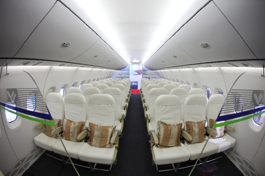 吳興世:(C919)機身特別的寬敞,在同類客機里面機身寬度最大的一種,比737寬多了,比320也略寬,大概要有5厘米左右?团摾锩婷總座椅、過道寬度也比較寬敞,人站立時離天花板、以及兩手展開時與周圍的行李架等,這些個空間寬敞,乘坐的心理感受會更好。另一個方面在上下飛機、同時在安放行李時會快捷一些,給乘客帶來更好的影響。