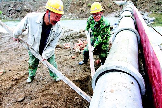 12月1日,施工人員在房縣化龍堰鎮高川段安裝連接集鎮污水處理廠的主管網。目前,房縣建成村級生活污水處理設施100多座,129個村生活污水處理率達到80%以上,還有15個鄉鎮生活污水處理廠新建項目、5個鄉鎮污水處理提標升級項目正在加緊施工,預計到今年底可全面建成通水,為城鄉河流水環境再提級達標提供保障。