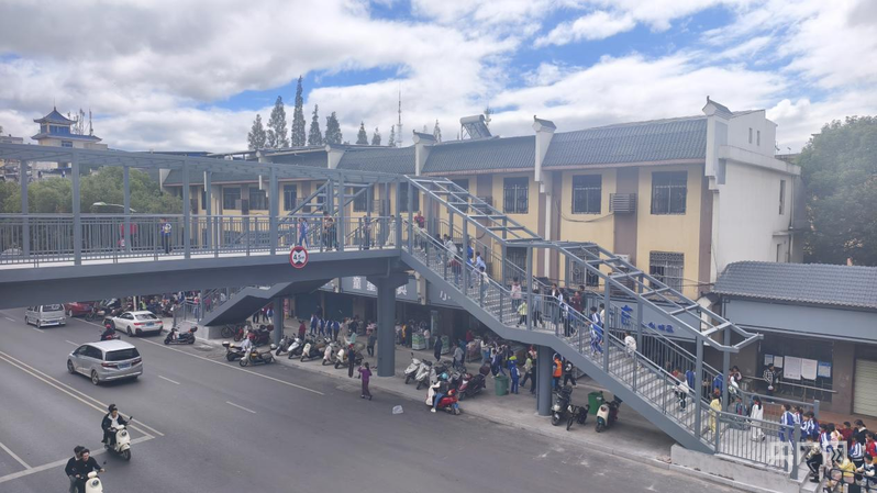 10月20日中午,二小放學時的過街天橋(央廣網發 余濤 攝)