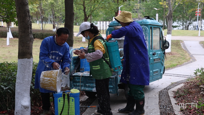 園林工人添加刷白劑(央廣網發 藍玉春 攝)