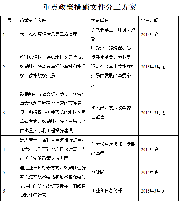 (五)推動(dòng)環(huán)境污染治理市場化。在電力、鋼鐵等重點(diǎn)行業(yè)以及開發(fā)區(qū)(工業(yè)園區(qū))污染治理等領(lǐng)域,大力推行環(huán)境污染第三方治理,通過委托治理服務(wù)、托管運(yùn)營服務(wù)等方式,由排污企業(yè)付費(fèi)購買專業(yè)環(huán)境服務(wù)公司的治污減排服務(wù),提高污染治理的產(chǎn)業(yè)化、專業(yè)化程度。穩(wěn)妥推進(jìn)政府向社會(huì)購買環(huán)境監(jiān)測服務(wù)。建立重點(diǎn)行業(yè)第三方治污企業(yè)推薦制度。