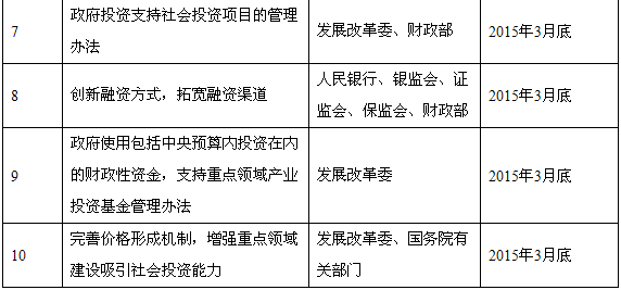 創(chuàng)新重點(diǎn)領(lǐng)域投融資機(jī)制對(duì)穩(wěn)增長、促改革、調(diào)結(jié)構(gòu)、惠民生具有重要作用。各地區(qū)、各有關(guān)部門要從大局出發(fā),進(jìn)一步提高認(rèn)識(shí),加強(qiáng)組織領(lǐng)導(dǎo),健全工作機(jī)制,協(xié)調(diào)推動(dòng)重點(diǎn)領(lǐng)域投融資機(jī)制創(chuàng)新。各地政府要結(jié)合本地實(shí)際,抓緊制定具體實(shí)施細(xì)則,確保各項(xiàng)措施落到實(shí)處。國務(wù)院各有關(guān)部門要嚴(yán)格按照分工,抓緊制定相關(guān)配套措施,加快重點(diǎn)領(lǐng)域建設(shè),同時(shí)要加強(qiáng)宣傳解讀,讓社會(huì)資本了解參與方式、運(yùn)營方式、盈利模式、投資回報(bào)等相關(guān)政策,進(jìn)一步穩(wěn)定市場預(yù)期,充分調(diào)動(dòng)社會(huì)投資積極性,切實(shí)發(fā)揮好投資對(duì)經(jīng)濟(jì)增長的關(guān)鍵作用。發(fā)展改革委要會(huì)同有關(guān)部門加強(qiáng)對(duì)本指導(dǎo)意見落實(shí)情況的督促檢查,重大問題及時(shí)向國務(wù)院報(bào)告。