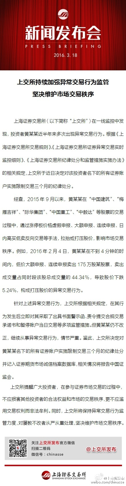 上交所:加強異常交易行為監管 堅決維護市場交易秩序