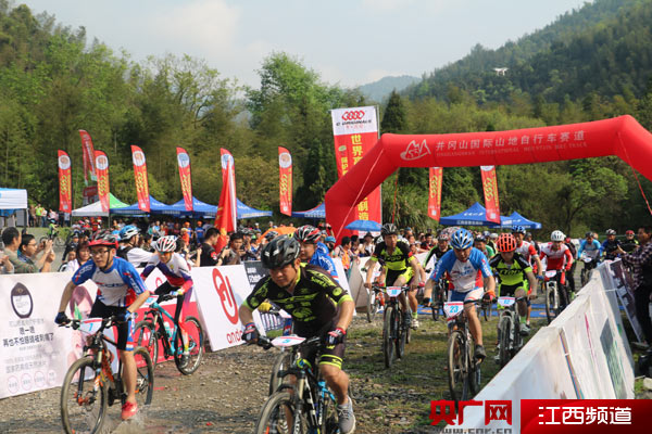 上午9時30分,隨著一聲發(fā)令槍響,比賽正式拉開序幕,參賽選手們迅速騎離起點,如箭一般向遠(yuǎn)方射去……選手們騎著單車,穿越木橋,翻越山地,路經(jīng)竹林,涉水過河,體驗著速度與激情;賽道兩側(cè),人頭攢動,喝彩不斷。此次活動不僅吸引了旅游戶外達(dá)人、攝影愛好者及新聞媒體的關(guān)注,也吸引了大量游客和井岡山市民前來觀看。