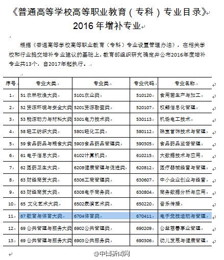 關鍵詞:教育部;電子競技運動;高校專業;專業目錄;專科;高等職業教育;高等職業學校;普通高等學校;體育類;13個