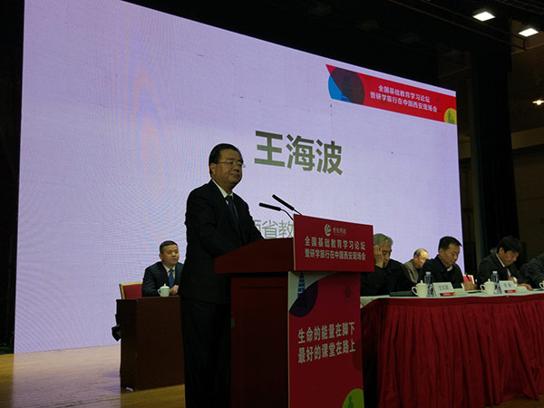 陜西省教育廳副廳長王海波致辭:強調研學旅行為核心素養落地的主要途徑之一