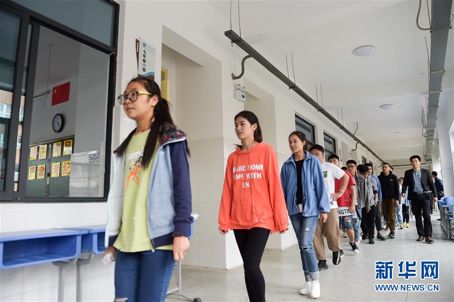 6月6日,來自安徽省合肥市第三十五中學西藏班的考生在金湖中學考點查看考場。當日,記者從教育部獲悉,2017年全國統一高考將于6月7日至8日進行,部分省(區、市)由于考試科目設置不同,9日仍安排有考試科目。今年全國高考報名考生共940萬人。新華社記者 張端 攝