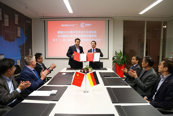 西北政法大學(xué)新聞傳播學(xué)院是在該機(jī)構(gòu)掛牌的第一個(gè)新聞院校,標(biāo)志著在DCKD平臺(tái)上開(kāi)展的德中文化交流從藝術(shù)擴(kuò)大到新聞傳播實(shí)訓(xùn)領(lǐng)域,由此,國(guó)內(nèi)高校新聞傳播教育開(kāi)啟了國(guó)際性跨文化體驗(yàn)式教育模式,讓學(xué)生走出校門(mén)、國(guó)門(mén),未來(lái)將培育出具有國(guó)際視野的復(fù)合型傳媒人才。