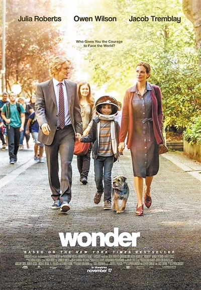 正在熱映的電影《奇跡男孩》由斯蒂芬·卓博斯基執導,奧斯卡、金球獎雙料影后的朱莉婭·羅伯茨,金球獎最佳男主角提名的歐文·威爾遜,《房間》男主角、奧斯卡備受關注的新星雅各布·特瑞布雷主演。片中,雅各布飾演的小男孩奧吉是個天生臉部畸形的孩子,在家里上了一段時間課之后,他決定開始第一次校園生活,勇敢打開頭盔,用自己真實的樣子迎接校園生活。然而,不尋常的外表讓他成為同學們討論的焦點,并終日受到嘲笑和排斥。對此,小奧吉也曾自卑過,將自己鎖在房間大哭。但在家人的關愛下,他憑借自身的勇氣、善良影響激勵了其他人,并收獲了友誼、尊重與愛,最終成長為大家心目中的不可思議的“奇跡”。