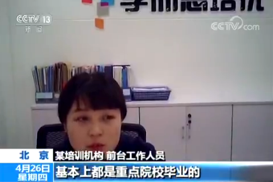 北京某培訓(xùn)機(jī)構(gòu)前臺(tái)工作人員:老師都是咱們自己招聘上來(lái)的,基本上都是重點(diǎn)院校畢業(yè)的。985、211,通過(guò)咱們統(tǒng)一的培訓(xùn)。