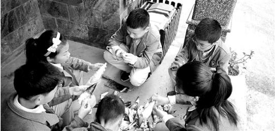左手學習,右手劈柴這里的小學生拜農戶為老師