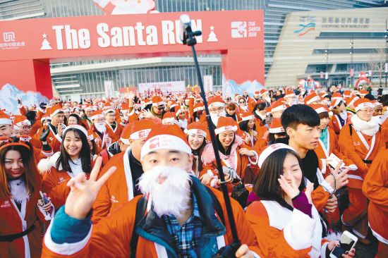 12月18日,“圣誕老人跑”主題活動在沈陽舉行。市民裝扮成圣誕老人參加冬日跑步活動。沈陽日報、沈陽網記者張文魁攝