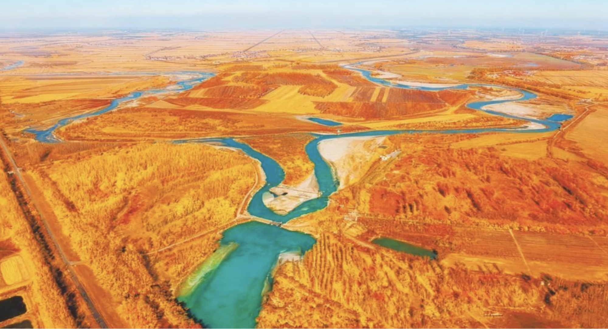 遼河有東西兩源,在鐵嶺市昌圖縣福德店匯流后,始稱遼河。立冬時節,草木盡染金黃,河流如碧帶蜿蜒,與岸邊斑斕的樹林、開闊的原野共同構成一幅動人的畫卷。