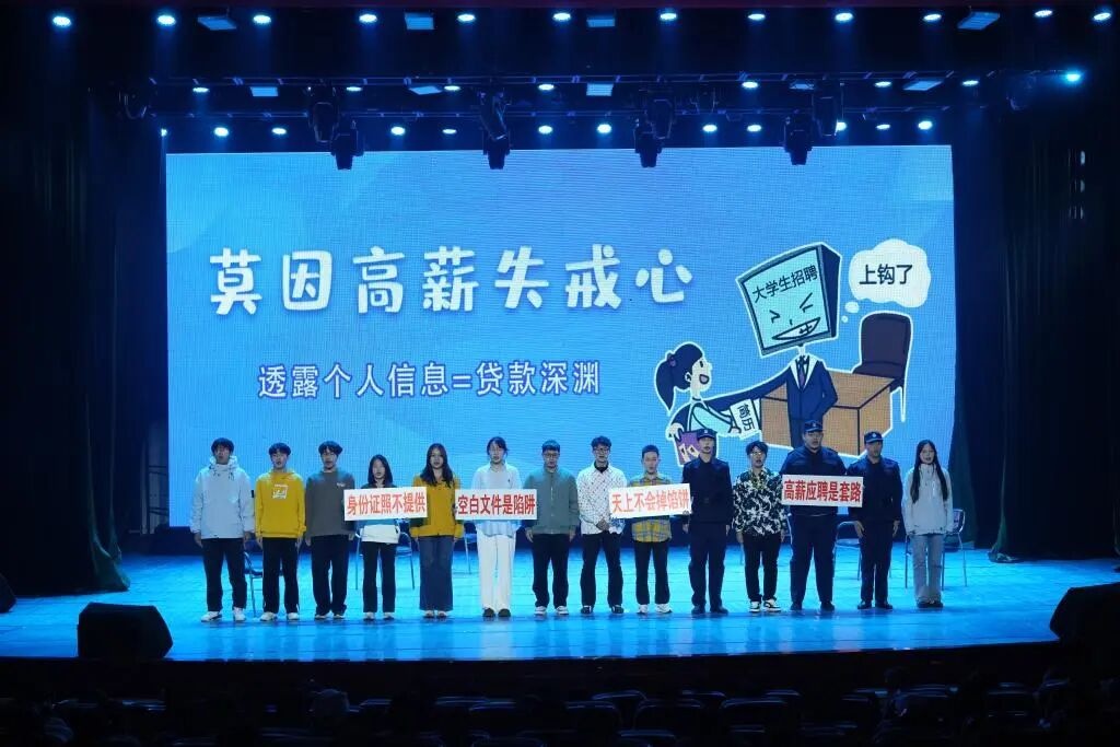本次巡演是沈陽理工大學(xué)將反詐情景劇這一品牌活動(dòng)從校內(nèi)深化走向校外共享的重要里程碑。延續(xù)此前兩屆活動(dòng)的成功經(jīng)驗(yàn),學(xué)生們繼續(xù)以真實(shí)案例為藍(lán)本,通過自編自導(dǎo)自演的生動(dòng)形式,將刷單返利、高薪誘惑、掃碼中獎(jiǎng)等校園高發(fā)詐騙類型搬上舞臺(tái)。劇目在層層揭露詐騙手法的同時(shí),深刻剖析了受騙者的心理過程,并自然融入了法治觀念、誠信意識(shí)與社會(huì)責(zé)任感的教育內(nèi)涵,使安全教育與思想引領(lǐng)在劇情推進(jìn)中實(shí)現(xiàn)無縫銜接與深度融合。同學(xué)們富有張力的表演與貼近生活的劇情設(shè)計(jì),引發(fā)了全場觀眾的強(qiáng)烈共鳴,現(xiàn)場掌聲陣陣。