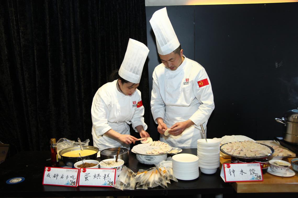 成都名廚現場烹制鐘水餃、蛋烘糕